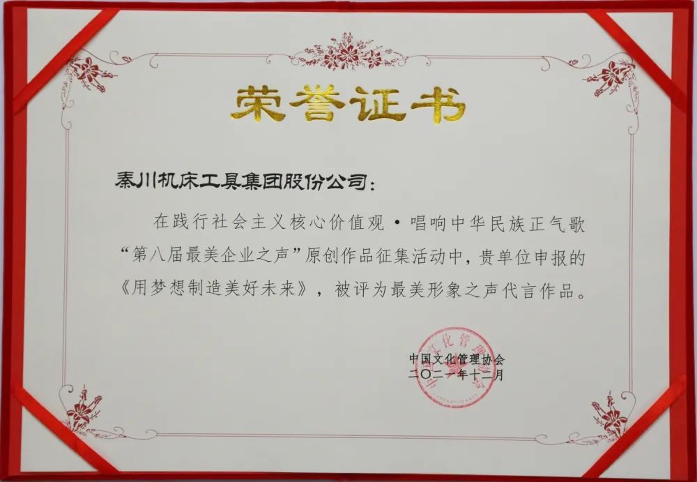 秦川集團(tuán)榮獲“新時(shí)代企業(yè)黨建實(shí)踐創(chuàng)新·典范單位”榮譽(yù)稱號(hào),選送的原創(chuàng)短視頻作品《用夢(mèng)想制造美好未來》獲“最美形象之聲代言作品”。